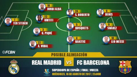 Posibles alineaciones del Clásico Madrid-Barça (Supercopa)
