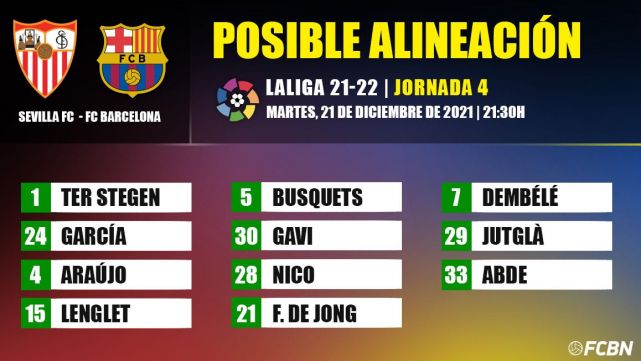 - XI del FC Barcelona: Ter Stegen; Eric, Araujo, Piqué; Busquets, Nico, Frenkie de Jong, Gavi; Abde, Jutlgà, Dembélé.