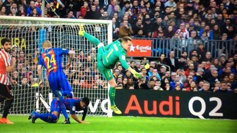 Y no porque estuviese cuajando un mal partido, sino debido a un fuerte encontronazo aéreo con Ter Stegen cuando los dos compañeros intentaban alejar un balón de la portería del FC Barcelona. En la salida del guardameta alemán, éste voló por los aires al tocar el balón los puños y, cuando caía, cortó a Rafinha Alcántara con la bota en la ceja del jugador brasileño.