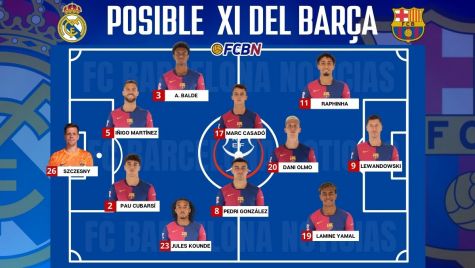 Para ello, el entrenador alemán pondrá sobre el terreno de juego lo mejor que tiene a disposición y no se esperan grandes novedades respecto al XI elegido ante el Athletic Club, contando con el refuerzo de lujo de Dani Olmo, cuya inscripción fue procesada el pasado miércoles. La gran duda está en la portería, donde Wojciech Szczesny e Iñaki Peña se debaten la titularidad después del castigo al alicantino en las semifinales del torneo. Son baja por lesión Ter Stegen, Andreas Christensen y Marc Bernal.