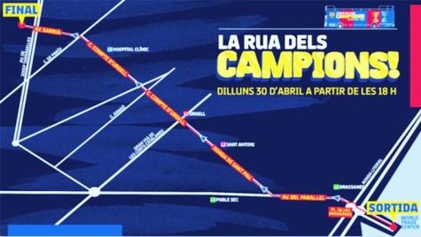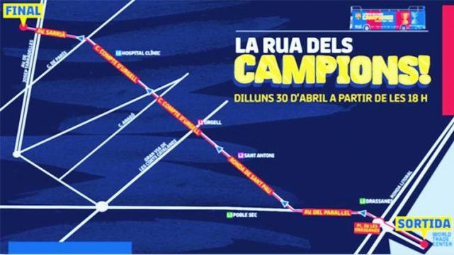Técnicos del club y del Ayuntamiento de Barcelona habían estado estudiando estos últimos días el mejor itinerario posible de la rúa de celebración, en base a las propuestas presentadas por las partes implicadas. Se sabe ya que la fiesta posterior con los aficionados se realizaría el día del Clásico, el 6 de mayo, durante los prolegómenos del partido, y no después de la rúa de este lunes.