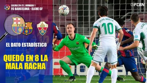 La última vez que el Barça no encajó un gol fue precisamente ante el Elche (0-2) el pasado 24 de enero. A partir de ese encuentro, los catalanes encarrilaron hasta ocho partidos consecutivos recibiendo al menos un gol, con un alarmante balance de 16 tanto en contra, equivalentes a dos en promedio por cada 90 minutos disputados.