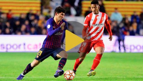 El FC Barcelona salió de los vestuarios mejor y su centro del campo comenzó a imponer su calidad. Aleñá y Riqui Puig destacaron e hicieron varias jugadas muy interesantes. Una de ellas acabó con la ocasión de collado, que remató fuera tras una gran conducción de Puig. El Girona contestó prácticamente a la jugada siguiente con una ocasión tras una carrera casi idéntica de Roberts que acabó en nada tras la llegada de los centrales culés.