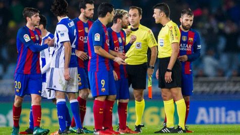 El diario "Sport" asegura que, en opinión de los árbitros españoles, los jugadores del Barcelona estarían "tensionados" y condicionados por todo lo que ha ido sucediendo durante las últimas semanas, por lo que saltarán a protestar a la mínima que crean que se ha producido una injusticia sobre ellos en los terrenos de juego.