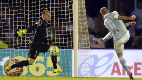 El primer gol encajado, sin ir más lejos, es prueba de ello. Nolito creó una obra maestra con un derechazo con rosca que entró por la escuadra, pero la estirada de Ter Stegen consiguió desviar ligeramente la trayectoria del esférico. El balón tocó al palo y entró, por lo que si el arquero nórdico hubiera endurecido un poco más los dedos de la mano quizá el desenlace de la jugada habría sido otro. Eso sí, de haber desviado dicho disparo a córner, Ter Stegen habría salido en las portadas de los diarios como protagonista de una gran intervención.