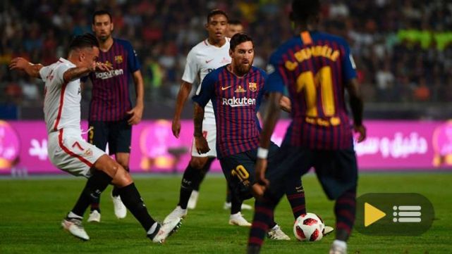 Vídeo resumen, goles y mejores jugadas del partido FC Barcelona-Sevilla (2-1), relativo a la Supercopa de España. Sarabia adelantó al Sevilla, pero la diana de Piqué y un golazo de Dembélé sirvieron para dar el primer título del curso al Barça