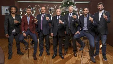 En declaraciones pronunciadas durante el tradicional brindis de fin de año de los capitanes de los equipos de baloncesto y fútbol del Real Madrid -Felipe Reyes, Sergio Llull, Marcelo y Sergio Ramos-, el presidente Florentino Pérez y los entrenadores de ambos equipos, Pablo Laso y Rafa Benítez, los altos miembros del club merengue desearon para el nuevo año 2016 la consecución de varios títulos que consigan terminar con la sequía de este último año 2015, vergonzoso para un Real Madrid que se quedó completamente en blanco y cayó en picado tras ganar el Mundial de Clubes.