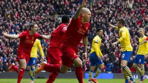 Martin Skrtel ha marcado dos goles de cabeza en sendas jugadas a balón parado que han mostrado la debilidad defensiva del Arsenal y la desconexión de varios de sus futbolistas. El 3-0 y el 4-0 han llegado a través de rápidos contraataques orquestados y definidos por Sturridge y Sterling, dos atacantes de nacionalidad inglesa pero de origen jamaicano. En la segunda parte los 'Reds' han bajado el ritmo, aunque Sterling ha conseguido su 'doblete' y Mikel Arteta ha conseguido recortar el gol del honor 'gunner'.