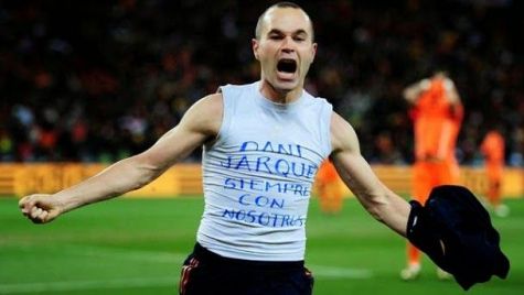 El centrocampista del FC Barcelona anotó el gol de la victoria de España en la final del Mundial y acto seguido se acordó de su compañero y rival, Dani Jarque. La mujer y la hija del malorgrado jugador del Espanyol no olvidan la dedicatoria del manchego