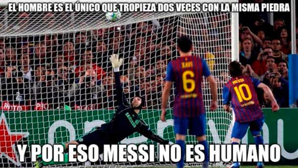 Muchas fueron las imágenes y las jugadas que marcaron la victoria del FC Barcelona sobre el Arsenal este martes, en la ida de los octavos de final de la Champions League. Pero sobre todo, fue Leo Messi el que se llevó todos los elogios y los mejores "memes" gracias a sus dos tantos. El argentino rompía su mala suerte ante el portero checo Cech, al que no le había marcado ningún tanto hasta la fecha.