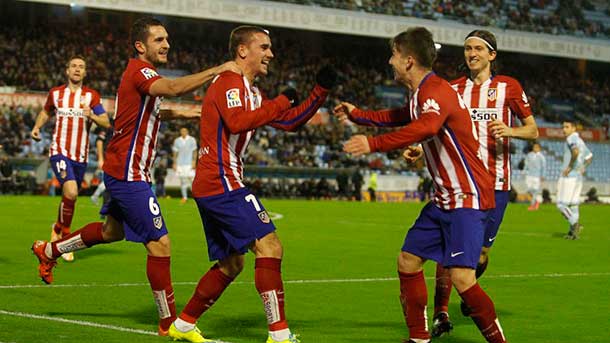 El Atlético de Madrid del "Cholo" Simeone sigue su lucha en el liderato de la Liga BBVA con el FC Barcelona después de conseguir vencer al Celta de Vigo por cero tantos a dos. Los colchoneros se adelantaron con un gran gol de Antoine Griezmann al comienzo del segundo tiempo en un encuentro que tuvieron muy controlado. Avanzada ya la segunda parte y ante los ataques de los locales, Carrasco aprovechó un balón suelto para, tras una buena jugada personal, sentenciar el partido.