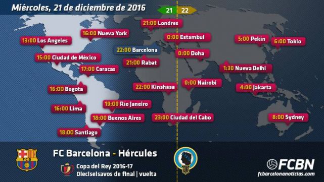 FC Barcelona y Hércules se enfrentan en el Camp Nou el miércoles 21 de diciembre a las 22:00 horas. El encuentro corresponde a la vuelta de dieciseisavos de final de la Copa del Rey 2016-17. Recordamos que la ida finalizó con empate a uno.