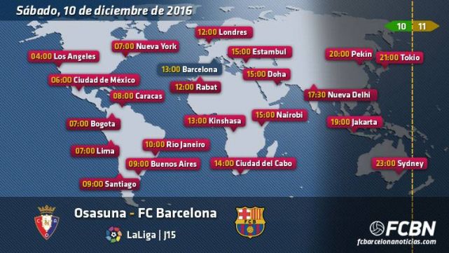 En Europa, el partido entre el Osasuna y el FC Barcelona podrá verse en directo a través de los siguientes canales y horarios: