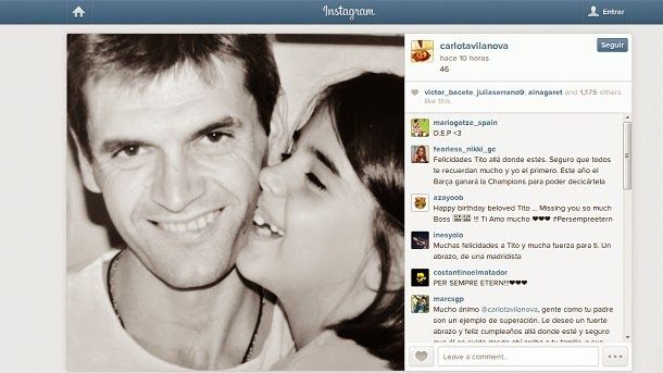 Francisco "Tito" Vilanova habría cumplido este miércoles 46 años. Su hija Carlota ha querido recordarlo colgando una emotiva foto en su cuenta de Instagram