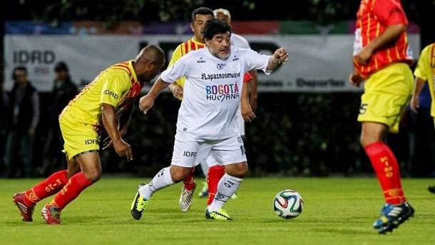 Maradona, que volvía a vestir de corto, agredió a un periodista y propinó patadas a varias personas cuando abandonaba el terreno de juego en el "Partido por la Paz". El ex jugador argentino estaba en Bogotá para apoyar el proceso de paz en Colombia