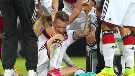 Reus sufre una fisura parcial del tobillo derecho, lo que le mantendrá varias semanas alejado del fútbol y con la obligación de descansar para no alargar los plazos de recuperación. "Para él y para nosotros es extremadamente lamentable. Marco estaba a un gran nivel y tanto en los entrenamientos como en los dos partidos contra Camerún y Armenia había dejado una magnífica impresión", señaló el seleccionador alemán, Jöachim Low, tras finalizar el encuentro. "No se trata de sustituir hombre por hombre a Marco Reus. Nuestra calidad en la posiciones detrás de los delanteros es muy alta".