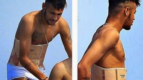 Al mismo tiempo que intenta disfrutar de lo que le queda de vacaciones, Neymar Jr prosigue con la recuperación de la vértebra que tiene fracturada desde el rodillazo de Juan Camilo Zúñiga en los cuartos de final del Mundial de Brasil 2014 contra Colombia. De hecho, las últimas imágenes publicadas por @fcb_OneTouch muestran cómo el brasileño está obligado a llevar un corsé terapéutico incluso en las playas de Ibiza para no arriesgar mínimamente todos los adelantos efectuados en el tratamiento.