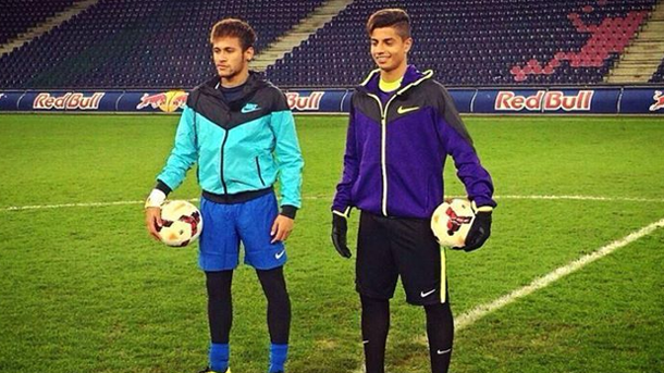 En un acto publicitario de 'RedBull' organizado en el estadio del Salzburgo, Neymar ha perdido un duelo de filigranas contra un prometedor centrocampista de 15 años, Hachim Mastour, propiedad del AC Milan. El joven futbolista, además, también ha ganado a Neymar en un Barça-Madrid, aunque de 'Playstation'.