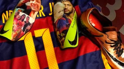 En estas espinilleras puede verse las fotografías con su madre y padre, y varios familias por una lado, y una en la que sale con su hijo Davi Luca, ambos con la camiseta del FC Barcelona. Junto a las protecciones y su mítica camiseta con el número once, también se puede ver en la fotografía su bota izquierda de color marrón, preparada para seguir haciendo magia una jornada más.