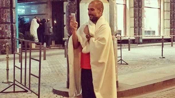 Jugadores, técnicos y directivos del Bayern han sido desalojados del hotel de Moscú donde se encuentran concentrados por una alarma de incendio. El ex entrenador del FC Barcelona, Pep Guardiola, junto con el resto de integrantes del equipo, ha tenido que bajar a la calle y lo ha hecho abrigado con una manta que el resguardaba de las bajas temperaturas de la capital rusa.