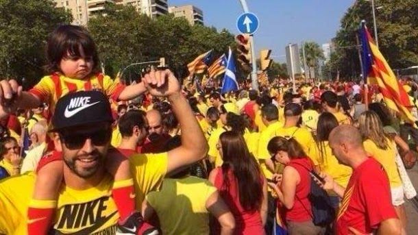 Gerard Piqué ha asistido a la manifestación del 11 de Setembre en Barcelona con su hijo, y lo ha compartido en su cuenta de Twitter. En las redes sociales también se pueden encontrar imágenes de Xavi cubierto con una senyera, o de Bartomeu, con un polo de color rojo