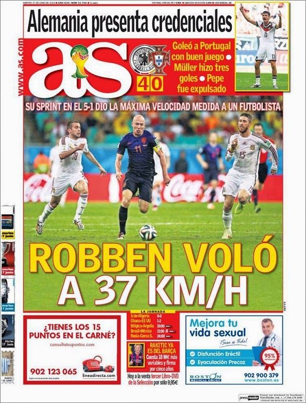 Portada AS 17/06/2014 - Robben voló a 37 Km/h