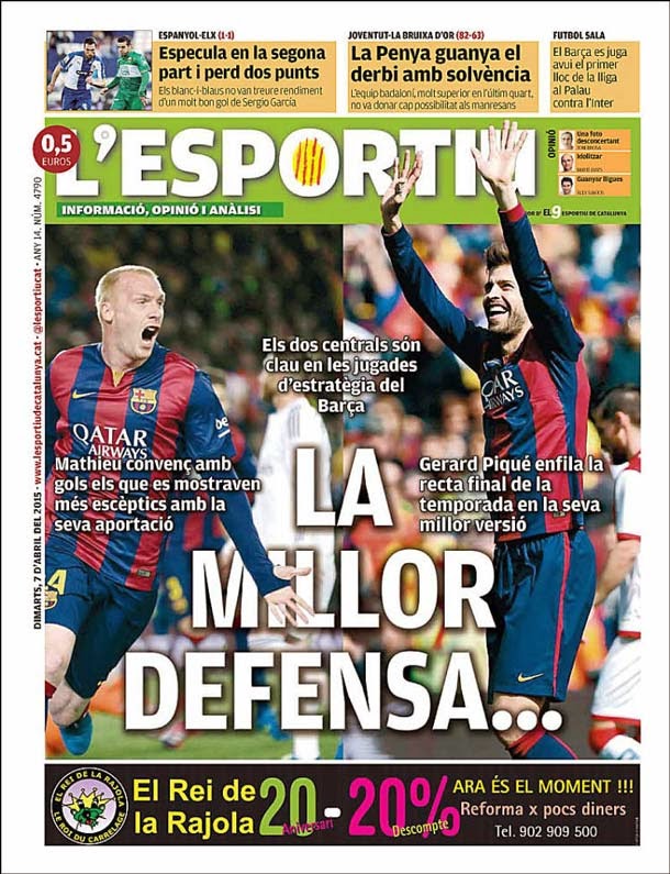 Portada L´Esportiu (07/04/2015) - La mejor defensa