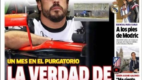 Portada del periódico Marca, viernes 27 de marzo de 2015. Fernando dio ayer un puñetazo sobre la mesa el día que tenía que hablar... Porque se asustó mucho tras el accidente.