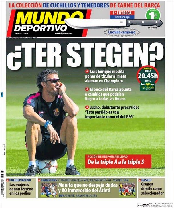 Portada Mundo Deportivo (17/09/2014) - ¿Ter Stegen?