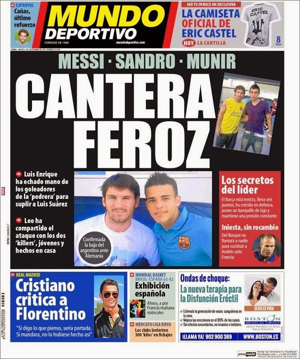 Portada Mundo Deportivo, martes 2 septiembre 2014 - Cantera feroz