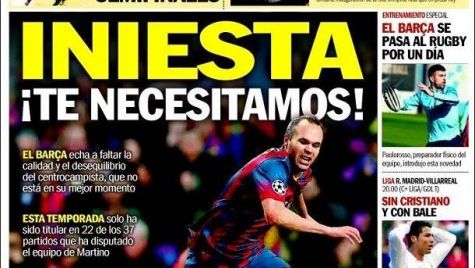 Portada Sport 08/02/2014 - Iniesta ¡Te necesitamos!