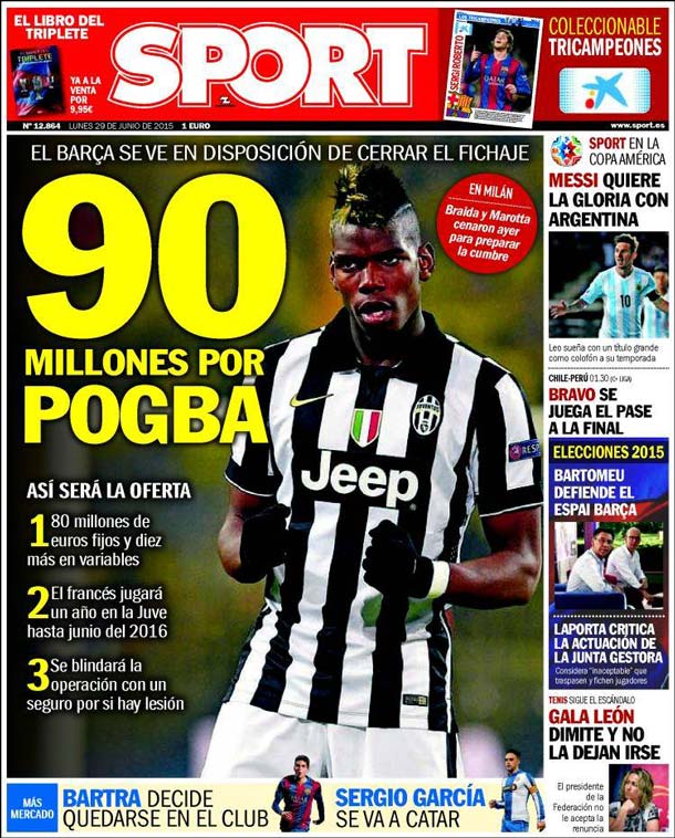 Portada Sport: 90 millones por Pogba