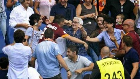 En una imagen más propia del fútbol formativo que del fútbol de élite, el jugador de la Roma Alessandro Florenz corrió a abrazarse con su abuela después de marcar un gol en el partido contra el Cagliari (2-1). Le faltó tiempo para saltar la valla y subir las escaleras hasta el palco. "Era la primera vez que me venía a ver jugar y me pidió que la saludara. Hace poco se encontró mal. Por suerte le pude dedicar un gol".