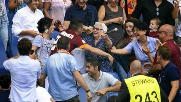 El jugador de la Roma Alessandro Florenz ha sido sancionado por celebrar un gol con su abuela. El futbolista festejó el tanto saltando las vallas de seguridad y accediendo a la grada