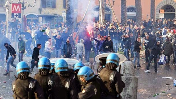 Ultras del Feyenoord destrozan el centro de Roma