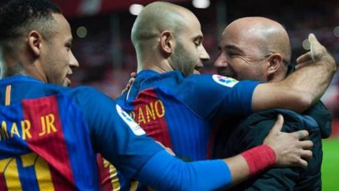 "(...) Por algo, el brasileño fue corriendo detrás de Mascherano a darle un abrazo tras aquel 2-1 que le propinaron al Sevilla por Liga. Lo hizo detrás de Mascherano, que tiene con Sampaoli un denominador común: Renato Cesarini, el club fundado por los hermanos Solari y Onega en las afueras de Rosario. Allí, Masche atravesó parte de su formación como futbolista (completada en River) y Sampa, como entrenador".