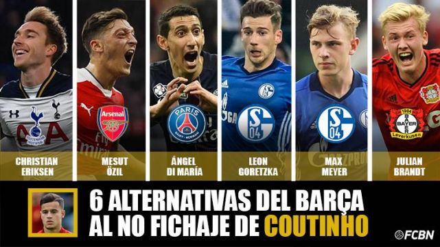 6 alternativas para el Barça si no logra el fichaje de Coutinho