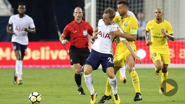 ¡COMO LA PEGASTE ERIKSEN! Golazo del mediocentro para que los Spurs empaten ante el PSG pic.twitter.com/Ayvh18p3Kj