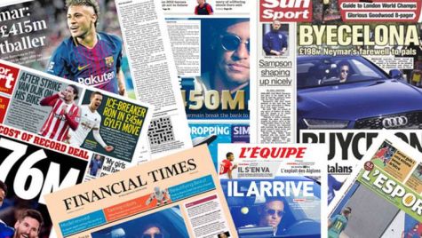La cuestión es que los rotativos mundiales arden y vomitan tinta y más tinta sobre la salida de Neymar Jr, que pese a no ser oficial todavía por parte de ninguno de los dos clubes, ya ha ofrecido indicios suficientes como para pensar que es irremediable, empezando por los últimos comunicados del FC Barcelona y la despedida de jugadores como Leo Messi. A continuación repasamos algunas portadas: