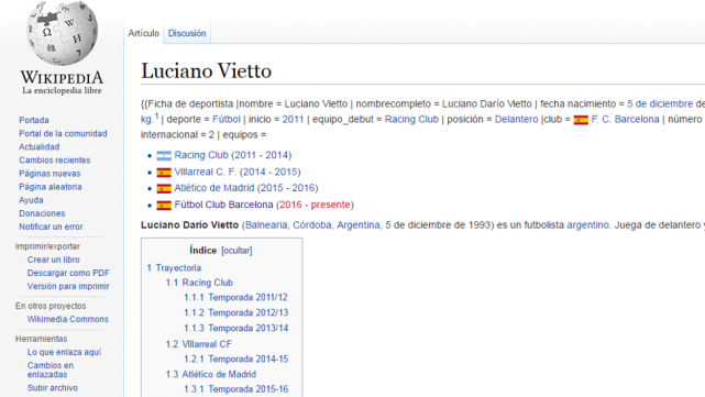 ¡Luciano Vietto ya es del FC Barcelona para Wikipedia!