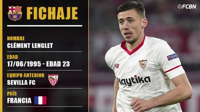 El FC Barcelona ha hecho oficial el ansiado fichaje para la línea defensiva: Clément Lenglet. El futbolista francés llegará al Camp Nou procedente del Sevilla y firmará por cinco años, hasta 2023 después de que el club azulgrana haya convencido al jugador y depositado la cláusula de rescisión de 35,9 millones de euros que estipulaba su contrato con la entidad hispalense.