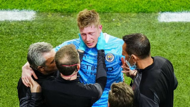 Kevin de Bruyne no pudo terminar de jugar la final de la Champions League por una lesión en la cara que le obligó a abandonar el campo a la hora de partido