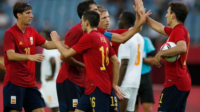 En un partido de gran intensidad que se decidió en tiempo extra, la delegación de España venció a sus similares del Costa de Marfil este sábado (5-2) en el partido correspondiente a los cuartos de final de los Juegos Olimpicos en el Miyagi Stadium. Fueron los tantos de Eric Bailly en el minuto 10, Dani Olmo (29), Max Gradel (89), un hat trick de Rafa Mir (92 – 117 - 120) y un penalti de Oyazabal (98) los que definieron el marcador.