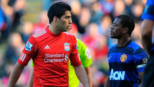 Patrice Evra y Luis Suárez protagonizaron un incidente racista hace varios años (temporada 2011-2012), en el que el francés acusó al charrúa de llamarle varias veces "negro". El '9' del FC Barcelona jugaba por entonces en el Liverpool, mientras que el galo jugaba en el Manchester United. Tras el encuentro entre ambos conjuntos, la FA investigo detenidamente lo ocurrido y decidió sancionar al uruguayo.