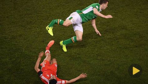 A falta de poco más de un cuarto de hora para el término del partido que enfrentaba a Irlanda y Gales, y con el marcador a cero, Seamus Coleman llegó antes que Neil Taylor a un balón dividido y sufrió una salvaje entrada de su contrincante, que entró con las dos piernas.