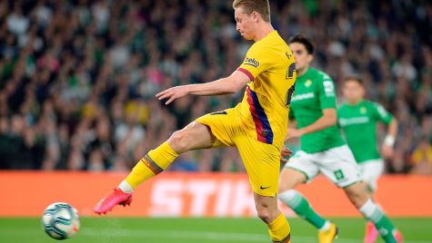 Quique Setién está implantando poco a poco su idea de juego en el FC Barcelona y una de sus ideas parece ser colocar a Frenkie de Jong unos metros más arriba. El holandés está llegando más desde atrás estas últimas semanas y contra el Real Betis una de sus subidas valió el 1-1. El neerlandés se metió en el área, controló con el pecho un genial pase de Leo Messi y fusiló a Joel a pocos metros del área.