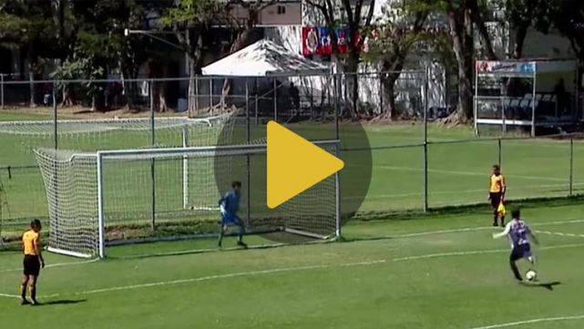 Sin embargo, en este campeonato, los encuentros no acaban con el pitido final ya que, al final de cada uno, los equipos disputan una tanda de penaltis que otorga un punto extra al que gane la serie. Fue en uno de esos lanzamientos que se produjo tal vez uno de los tiros más raros de toda la historia.