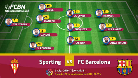Alineaciones del Sporting de Gijón vs FC Barcelona (Liga J6)