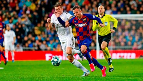 En el caso del ex de Gremio, al menos, lo fue hasta que le duró la gasolina, que fue mucho menos de lo esperado. El internacional 'canarinho' brilló en la primera parte y mandó en un Barcelona que fue superior, jugó bien y tuvo tres oportunidades de gol clarísimas para adelantarse. Una de ellas, de hecho, fue de Arthur, que sorprendió a Toni Kroos y a toda la defensa madridista en una jugada que pareció más de Leo Messi que suya.