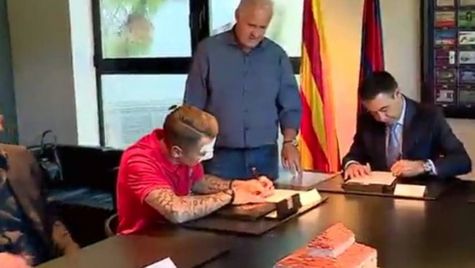 El nuevo fichaje del FC Barcelona, Lucas Digne, firmó contrato este jueves por la mañana en las oficinas del Camp Nou, acompañado del presidente Josep Maria Bartomeu y otros miembros del club. Firma por cinco temporadas